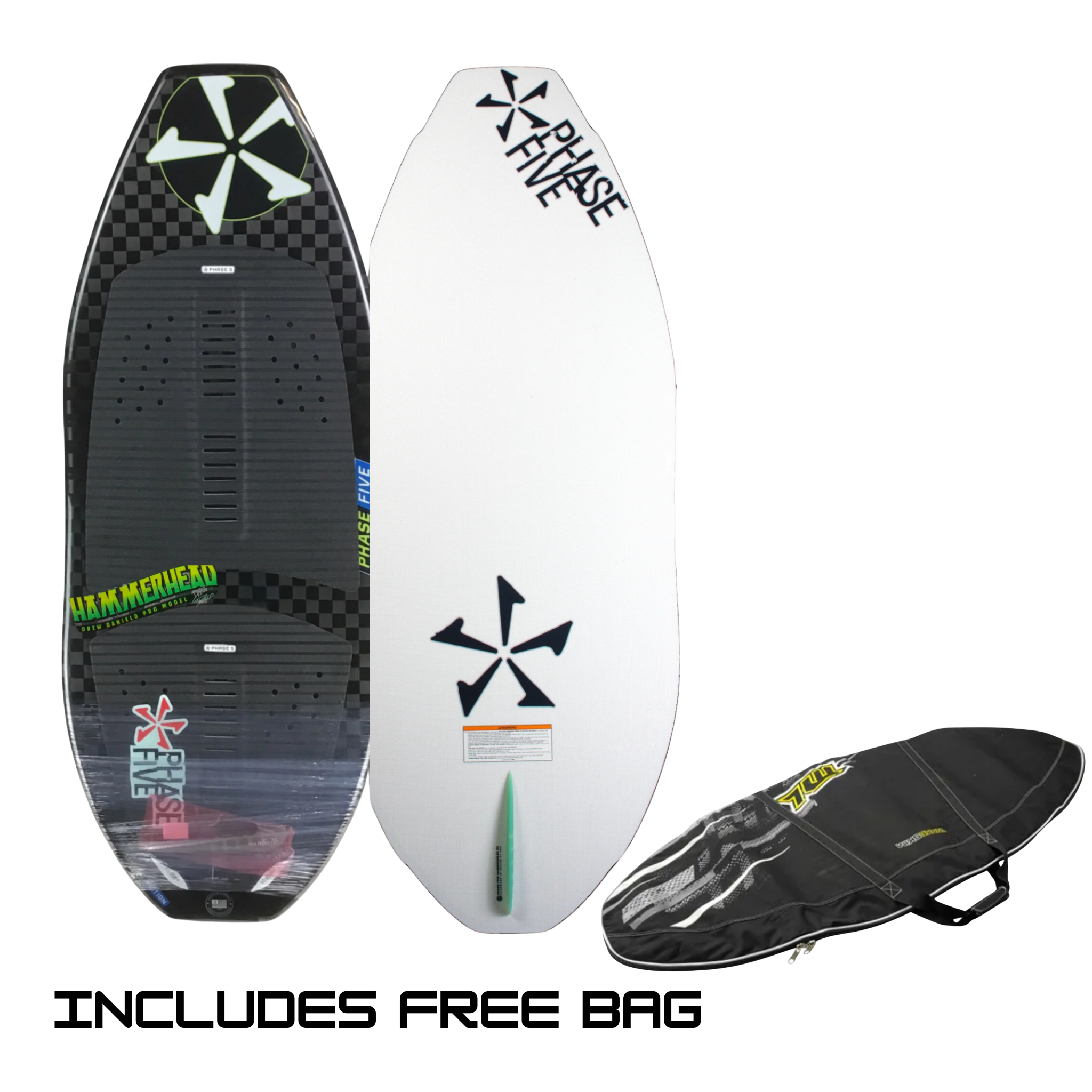 The Phase Five Hammerhead Wakesurfer is king of revert. With a square nose and tail design, the Hammerhead delivers tons of speed and stability in both directions. Drew Danielo discovered that a traditional pulled in nose would struggle to ride backwards. This is where the Hammerhead triumphs. In addition, the peanut side rail design creates two contact points on the wave instead of one. This keeps the Hammerhead locked in and pointed down the line. The peanut outline adds surface area under each foot for increased maneuverability and speed than its predecessor.