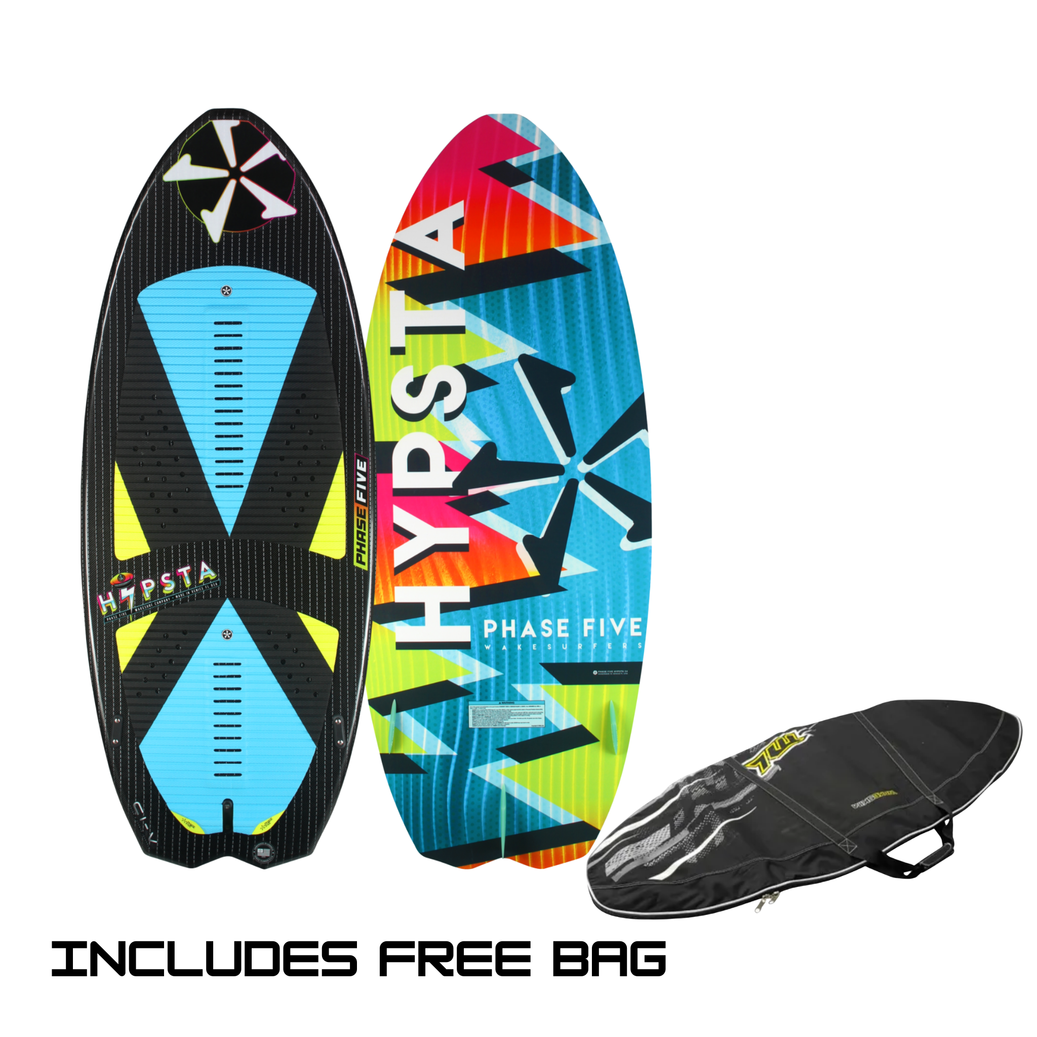 Short and wide compared to the average wakesurf board, the Hypsta is a compact powerhouse. The Hypsta’s full width carries down to a squared swallowtail making it fast, stable and maneuverable. A short board that can spin easily. but don’t let the Hypsta’s short length make you think it wont stay in the wave if you are a large rider. This bad boy carries tons of momentum and effortlessly remains in the sweet spot. The Phase Five Hypsta Wakesurfer is in a league of its own.